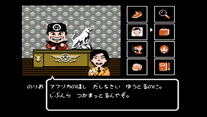 ゲームはアイコン選択式のコマンドアドベンチャーで、「移動」「聞く」「捜査」などの基本操作に加えて、「どつく」「さんま」といったユニークなコマンドも登場。