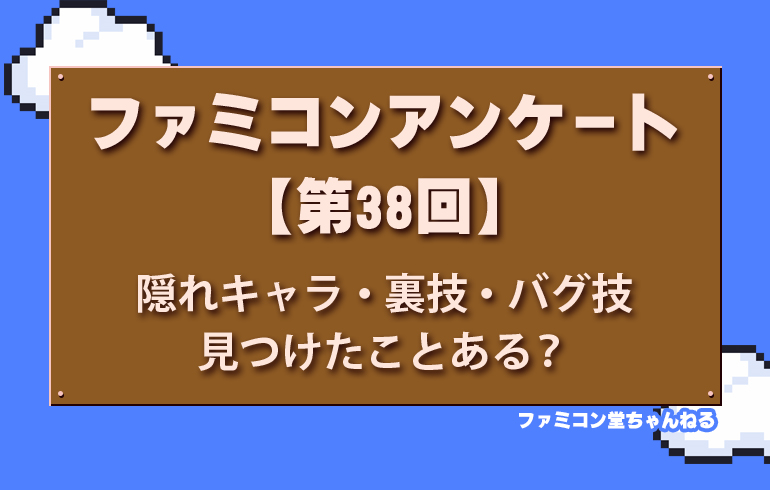 隠れキャラ・裏技・バグ技見つけたことある?【第38回】 2025.07.30 アンケート あなたは隠れキャラ・裏技・バグ技など 探して見つけたことありますか? ある ない 南国ステージの思い出、ゲームはどれ?【第37回】 前の記事 任天堂のおすすめシリーズといえばどれ!?【第39回】 次の記事 関連記事 アンケート ガチで泣いてしまったゲームはどれ?【第96回】 アンケート ミュージシャンゲーム選ぶなら…どれ?【第81回】 アンケート ふたり同時プレイするならどれ?【第97回】 アンケート 熱狂!二人同時プレイ ファミコンはどれ??【第11回】 コメント 0 コメント 0 トラックバック この記事へのコメントはありません。 トラックバックURL この記事へのトラックバックはありません。 返信をキャンセルする。 名前(例:山田 太郎) E-MAIL - 公開されません - URL