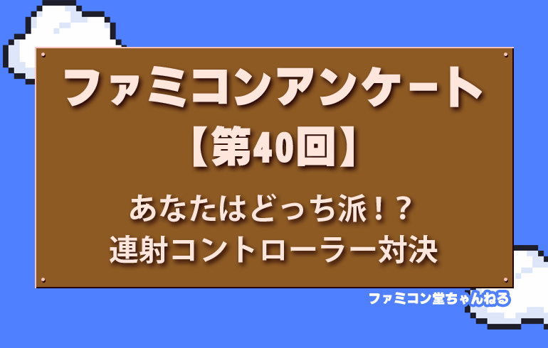 あなたはどっち派!?連射コントローラー対決【第40回】 2025.07.30 アンケート 🔥ファミコン時代の連射コントローラー対決🔥 懐かしの連射アイテムを選んでね あなたの連射の思い出、語ってください✨ ジョイカード2 ホリコマンダー スーパーコントローラー2 任天堂のおすすめシリーズといえばどれ!?【第39回】 前の記事 あなたの推し2コンキャラは誰??【第41回】 次の記事 関連記事 アンケート ファミコンの“恐怖”と“戦い”が詰まったホラーアクションゲームはどれ?【第27回】 アンケート ファミコン高額ゲーム おすすめはどれ?【第70回】 アンケート 今からレトロゲームをするならどのハードがおすすめ?【第99回】 アンケート 珍しい付属品、あなたが一番気になるのはどれ?【第86回】 コメント 0 コメント 0 トラックバック この記事へのコメントはありません。 トラックバックURL この記事へのトラックバックはありません。 返信をキャンセルする。 名前(例:山田 太郎) E-MAIL - 公開されません - URL