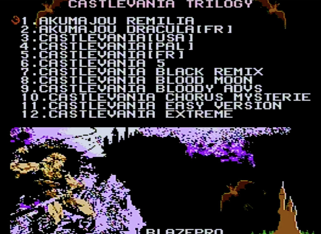 1本のカセットにROM版シリーズ(悪魔城ドラキュラ・悪魔城ドラキュラII・悪魔城伝説)+改造版オリジナルゲームをブチ込んだという、とんでもないブツ!