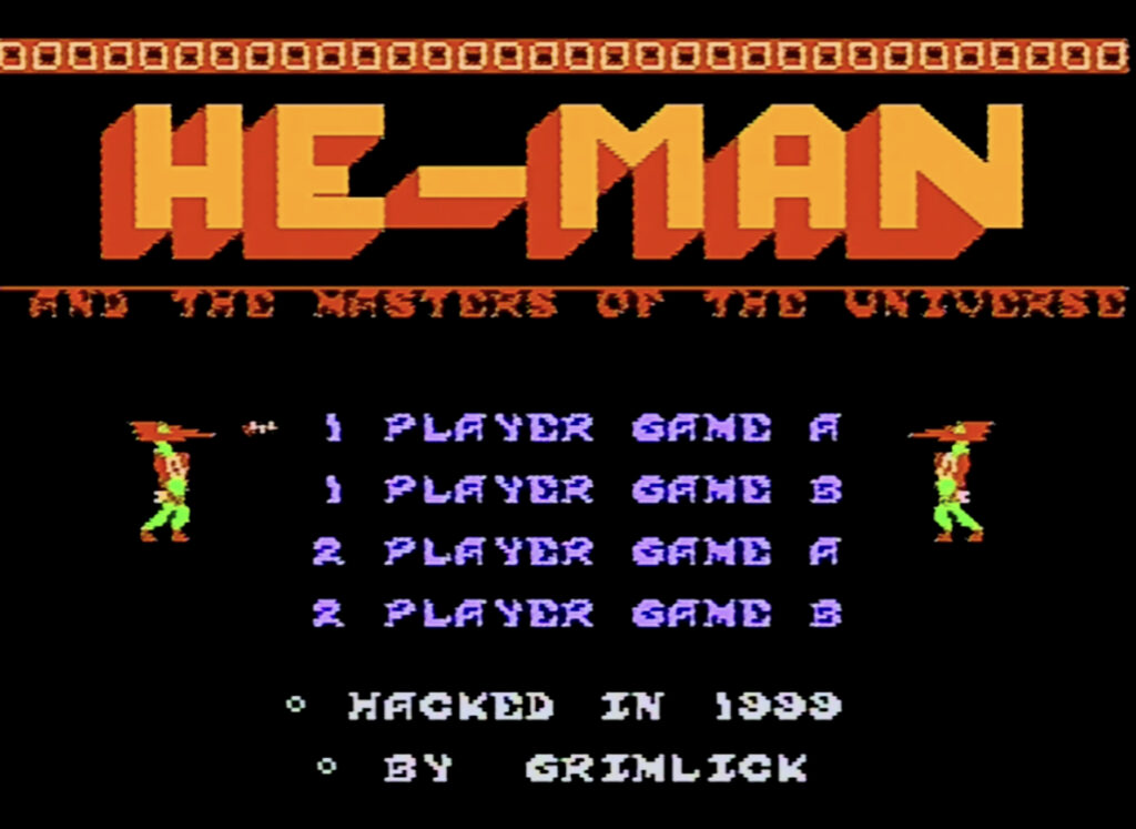 パッケージはパンツ一丁のアメリカンマッチョヒーロー『HE-MAN』! なのに起動した瞬間、流れてきたのは「デデデデッデッデッデ♪」…どう聞いてもファミコンの『スパルタンX』じゃねーか!