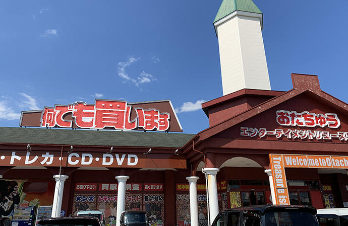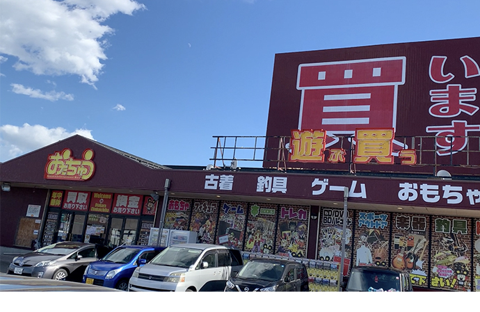 広い駐車場があって車でのアクセスもしやすく、おもちゃやトレカ、ゲームなど様々なジャンルを販売しています。