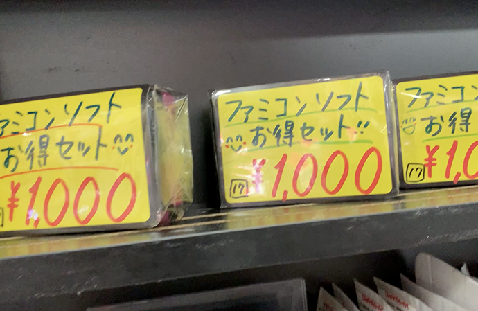 また、ファミコン3点セット(1000円)などお得な商品も販売しています。