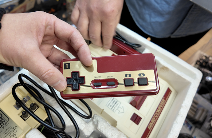 ジャンクコーナーも強烈です。動作未確認の本体が山積みで、茶色く変色したファミコンやディスクシステムなど“修理好き歓喜”な個体が手頃価格で転がっているのが最高。