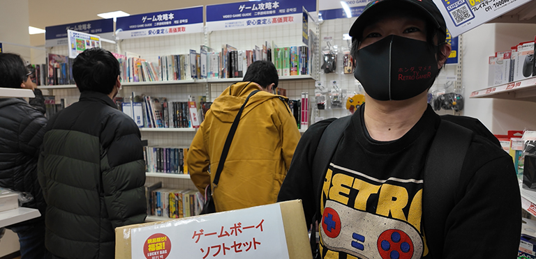オサカナ店長が訪れた際も、すでに一戦終えたかのように袋いっぱいに商品を抱えたお客さんの姿があり、まさにレトロゲームファンのお祭り会場のような雰囲気でした。