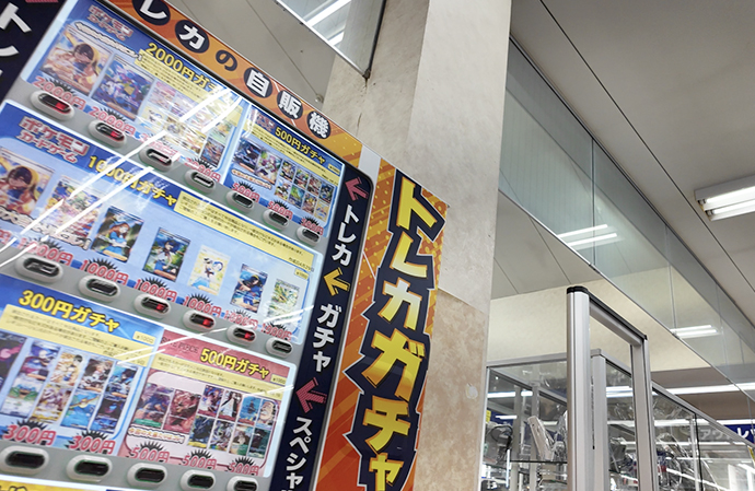 店舗に入るとすぐ目の前にはトレカステーションが見え、左手の方にレトロゲームやレトロハードのショーケースがあります。