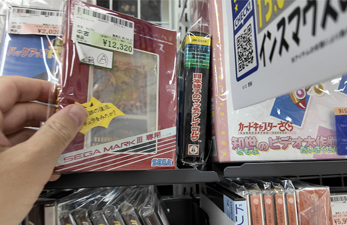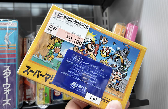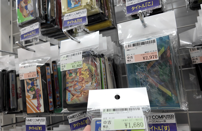 一例を挙げるなら、ショーケース内に超レア裸カセットのバゾルダーなどがありました。ショーケース内は高額なゲームが多いですが、よく探せばもっともっとレアなゲームが見つかりそうですね。