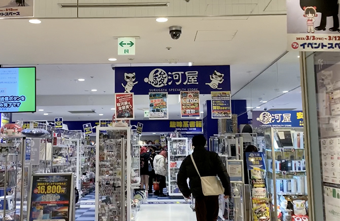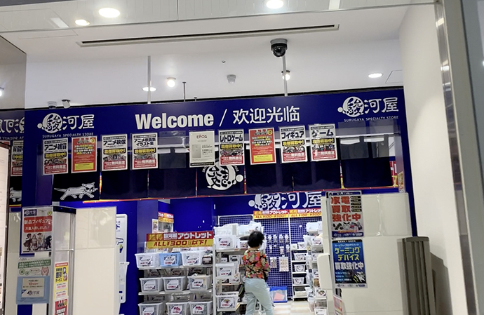 エスカレーターを登っていくと駿河屋のデコレーションが迎えてくれますので、すぐ分かります。