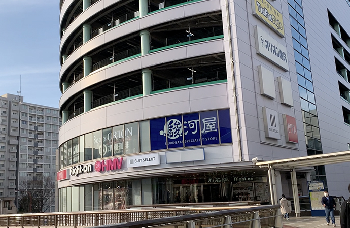 駿河屋立川北口店は立川駅北口から徒歩3分、オリオン書店ノルテ店の隣にあります。