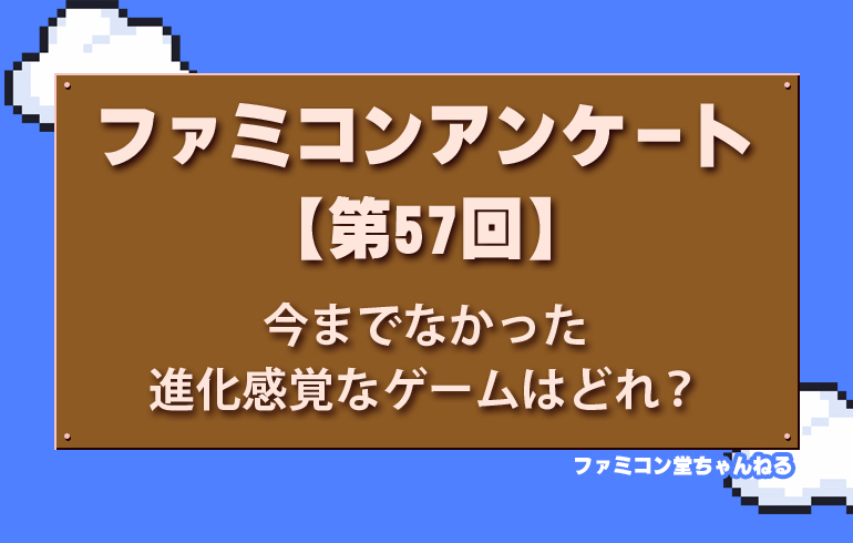 今までなかった進化感覚なゲームはどれ?【第57回】 2025.09.05 アンケート アイディア勝ち!斬新すぎたゲーム 当時、これは 今までなかった進化感覚なゲームはどれ? そんな“発明レベル”にアイディアが光ってたゲーム、どれですか? ベストプレープロ野球 ファミリージョッキー 桃太郎電鉄 くにおくんドッジボール スーファミ購入後も、ファミコンプレイしてましたか?【第56回】 前の記事 ジャンプ作品でおすすめの漫画ゲームは?【第58回】 次の記事 関連記事 アンケート あなたの“推しヒロイン”は誰!?【第30回】 アンケート アニメ原作で一番面白かったファミコンゲームは?【第22回】 アンケート あなたが一番「涼しくなれる!」と思うゲームはどれ?【第26回】 アンケート ファミコンカートリッジといえば 何色が好き?【第69回】 コメント 0 コメント 0 トラックバック この記事へのコメントはありません。 トラックバックURL この記事へのトラックバックはありません。 返信をキャンセルする。 名前(例:山田 太郎) E-MAIL - 公開されません - URL